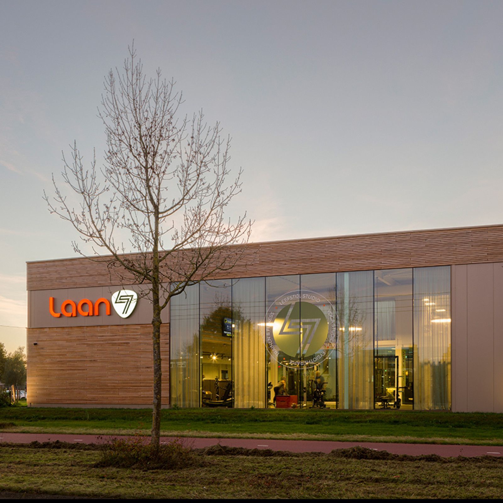 In verbinding staan met buiten en de natuur: dat gevoel ervaar je in Gezondheidscentrum Laan 7, het centrum voor gezonde leefstijl in Geldrop. De combinatie van duurzame houten geveldelen, bronskleurige panelen en grote raampartijen zorgt voor zicht op binnen en buiten en nodigt uit om te komen bewegen.